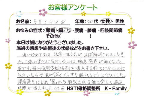 お客様アンケート 子育てママ❤様(40代・女性)