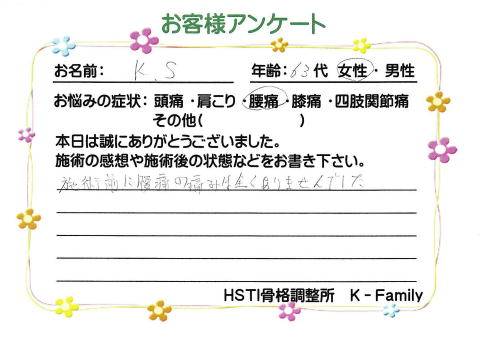 腰痛で悩んでいたSさん。