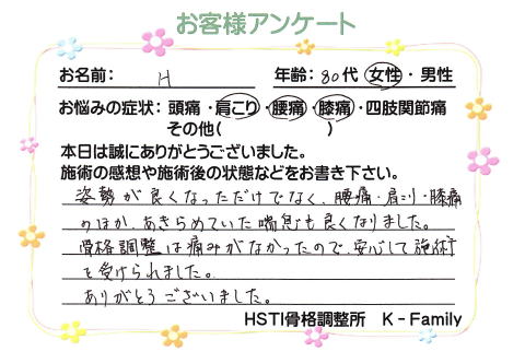 お客様アンケート H様(80代・女性)