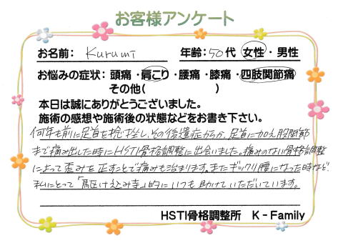 お客様アンケート Kurumi様(50代・女性)
