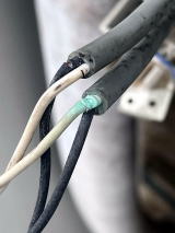 すると、案の定配線が切れかかっていて銅線が変色していました。😱